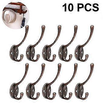 10 Pack Rustic Coat Hooks Wall Mounted Heavy Duty Dual Hooks Retro Double Robe Hooks Utility Hooks with Screws for Hanging Coat, Bag, Hat, Towel, Cup