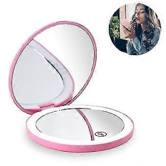 Material: ABS + aluminum mirrorColor: pink, black, greenMirror size: 8.5 cm, flat mirror 7.1 cmPackage Contents: 1 * portable folding mirror1.Rechargeable LED Compact Mirror: Lighted compact mirror with LED light is rechargeable. Soft LED ring light simulates daylight help you to create the flawless makeup.2.Adjutable Brightness: Easy to adjust the brightness to meet any environment for you. The ring light is soft and close to natural daylight to be ready for your flawless makeup.3.Magnifying Mirror:1x flat mirror with high definition is great for checking overall makeup, with light on you can have an even clearer look; 10x magnifying mirror with light has better close up for any details.(Please use 10x within 15cm).4.Easy to Use: Double click to turn on the light; hold and press to adjust the brightness as you need; click once to turn off when you dont need light.5.Compact Size and Sleek Look: Elegant design for all the occasions such as daily use, party, date or travel. ABS mirror cover is comfortable for handheld.About Shipping: All items will be shipped within 3 business days after the payment is received. Most times you will receive them within 8-12 days then. The specific delivery time is depend on circumstances.Any questions, please feel free to contact usDuring the shopping process, if you have any questions, please feel free to consult us, we will reply you within 24 hours, wish you a happy shoppingThanks for your cooperation and we'll make you feel satisfied.