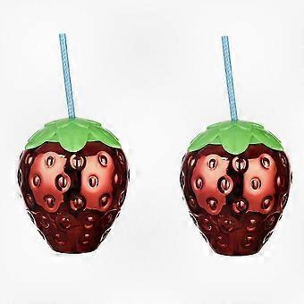 2 Pieces Strawberry Disco Ball Drinkware with Red Straw, Ideal for Events, Removable and Reusable, Perfect for Poolside Gatherings