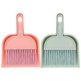 2 Sets of Mini Broom and Dustpan Sweeping Tool for Home Office Desktop Keyboard Cleaning (Blue and Pink)