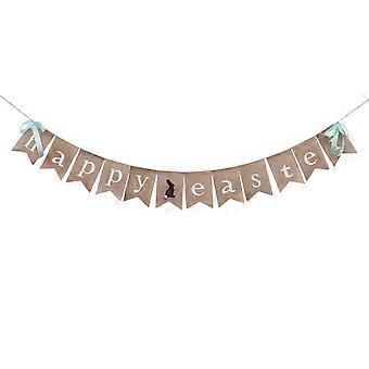 2.8m Happy Easter Burlap Banner with Bunny Pattern Bunting Easter Party Home Decorations