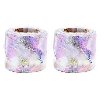 2Pcs Tulle Rolls 25 Yards Gradient Colorful Feather Pattern Bronzing Mesh Decorative CraftsWhite