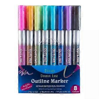8Pcs Marker Pen for Highlight,Outline Marker Set Double Line Self-outline Marker