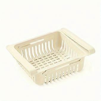 Adjustable Plastic Refrigerator Basket, Stackable Kitchen Drawer Organizer, Space-Saving Shelf with Freshness Divider for Fridge Storage