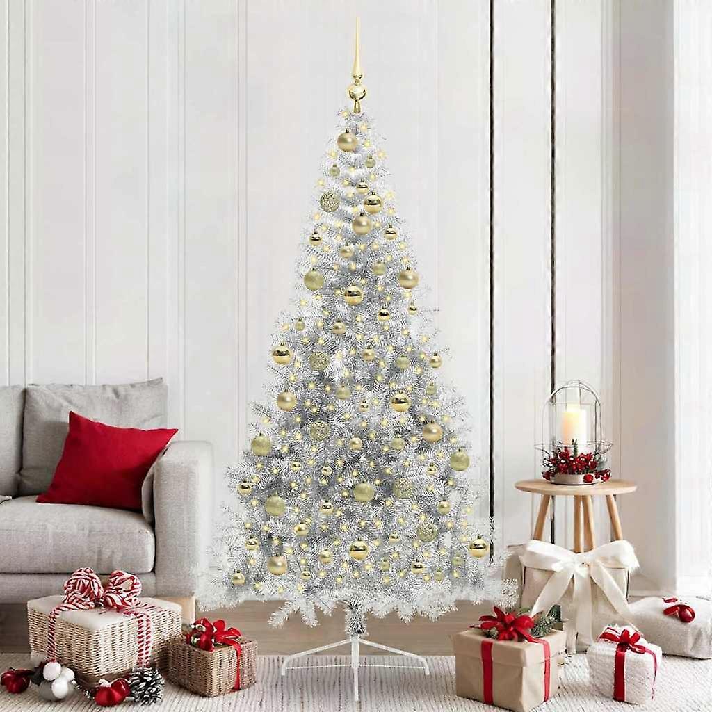 Künstlicher vorbeleuchteter Weihnachtsbaum Silber 210 cm