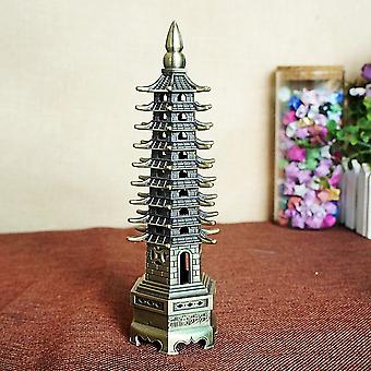 Metal Statue Statue Chinese Style WenChang Tower Model Figurine Alloy Miniature Pagoda Ornaments Office Home Desktop Decor