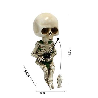 Fishing Skeleton Garden Statue Figurine Resin Sculpture, Ornament for Patio Decoration
