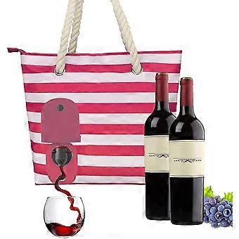 Beach Wine Purse Canvas Tote Handbag With Hidden Dispenser Insulated Compartment