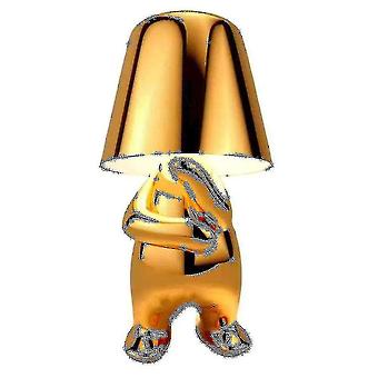 Bedside Touch Table Lamp, Gold Thinker Lamp Desk Light Cordless Rechargeable Portable Decorative Nightstand Lamp With Usb Charging