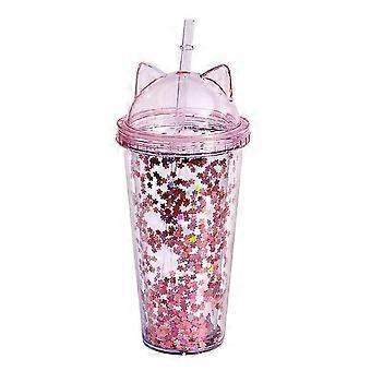 Cat Eyes Double Layer Straw Cup Reusable Fashionable Straw Cup for Home