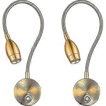 About this item Dimmable Bright Enough:Integrated LED 3W light source equivalent to a 10W bulb,energy saving. Sensitive Touch Dimmer: This LED reading lights use the most smart touch dimmer feature, touch the ON/OFF switch with your finger and the LED reading light will light up. Stepless dimmer will help you choose the right brightness to meet all you need in different occasion, perfect for reading, working,and sleep. 3 Color Modes:Each light touch will change color mode,3000K warm white/4200K neutral white/6000K cool white to meet on different occasions your various needs, ideal for bedside reading or working, and light up your bedroom or living room, corridor any interior wall to meet your extra illumination desired the sofa or in other spots. 360 Degree Rotates:Comes with flexible gooseneck arm and head can be rotated 360,so you can adjust height and shine a light where you need easily, the base will stay sturdy when you adjust the angle. It could be at any angle that you like, directional light don't disturb the sleeping partner. Easy to install and flexible, could be placed at anywhere that you want. Lighting power: 2W Voltage: DC 5V (USB plug) Adapter: Input AC100-240V Output DC5V 1A Light source: 1 LED Color temperature: monochrome 3000-3200K warm white light 6000-6500K neutral light 4000-4200K Neutral light is optional; Three color warm white light cold white light neutral light switchable Color rendering index: Ra > 80 Switch: touch sensing, Three color warm style short press warm white light, cold white light, neutral light, and turn off the light; Long press to adjust brightness Size: Base D64 * 28mm; Hose D8 * 386mm; Lamp cap: D31 * 57mm Wire length: 180cm Material: Aluminum base, aluminum lamp head, iron lamp pole package2pcs wall lamp(Antique Brass)