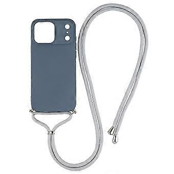 For iPhone 17 Pro Case Soft TPU Fiber Lining Phone Cover with Shoulder Strap - Lavender Grey