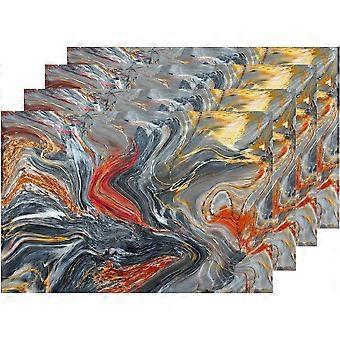 Gray Marble Texture Placemats, Grey and Red Ink Acrylic Waves Texture Table Mat Linen Burlap Washable Double-Deck Heat Insulation for Dining Table Kit