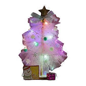 Handmade DIY Mesh Tabletop Christmas Tree with Lights Tree Toppers Star Easy Assembly for Festive Home Decor Pink