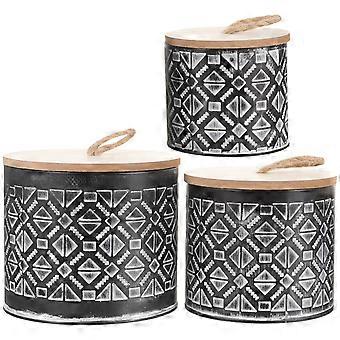 Iron Flowerpot 3Pcs Embossed Round Storage Bucket Designed For Gift Giving Assorted Color Featuring Sealing Functionality