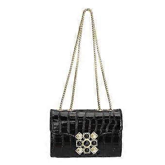 Messenger Shoulder Bag Black PU Leather Large Capacity Modern Stylish Versatile Chain Bag for Daily Travel 9 Grid Lock Stone Pattern Free Size