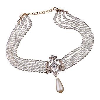 Multi Strand 4 Layer Crystal Simulated Pearls Bib Choker Necklace