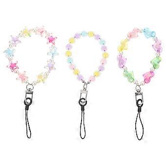 Phone Chain Beaded Mobile Phone Rope Anti-Slip Decorative Double-Layer Beads Design Assorted Color 20X1.5Cm Easy to Install and Remove 3Pcs