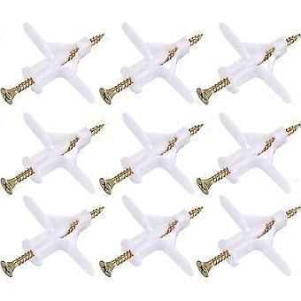 Plasterboard Anchors, Plastic Anchors With Drywall Screws, Self Tapping Screws And Anchors Fixing Kit Assortment For Shelf, Hollow Block - 50 Pcswhite