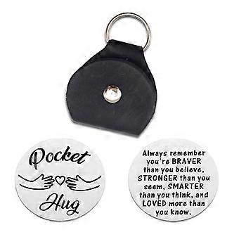 Pocket Hug Token keychain Stainless Steel Double Sided Tokens with PU Leather Keychains Relationship Keepsake Gift