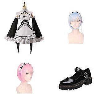 Re-zero Rem Ram Girls Maid Costume Lolita Dress Anime Cosplay Halloween Costume , Black,50% Offer