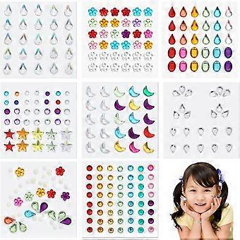 Reusable Face Jewels for DIY Face Gems, 8 Sheets Eye Catching Makeup Multi-Occasion Accessories with Easy Application Removal, Crystal Design for
