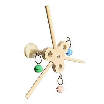 Safe Chew Wooden Rotating Windmills Bird Toy Colorful Rotating Bells Decoration Encourages Parrots Play And Exploration