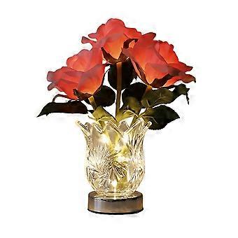 Rechargeable LED Color Changing Light Roses Crystal Glass Vase Cordless Control Dimmable Night Lamp for Valentine's Day