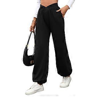 Wide Leg Sweatpants Female Baggy Drawstring Elastic High Waisted Palazzo Lounge Pants Black L