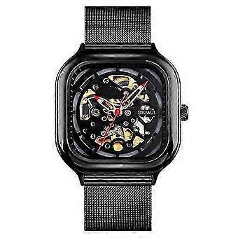 SKMEI 9184 Men Automatic Mechanical Watch Mesh with Hollow Square Tourbillon Student Watch (Black)