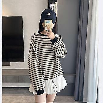 Striped Sweatshirt Women's Fleece Thickened Winter Hatless Simple Loose Autumn And Winter Lazy Wind F1018