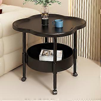 Side Table with Wheels, 2-Tier Modern End Table Living Room Plastic Mobile Sofa Side Table Small Night Stand Bedroom, Black