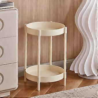 Modern Round Side Table with 2 Tiers, Plastic and Steel Frame for Living Room or Bedroom