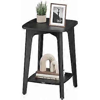 MAEZO 2-Tier Side Table, Small Square End Table with Tapered Legs, Charcoal Gray – Compatible with Small Spaces, Living Room & Bedroom