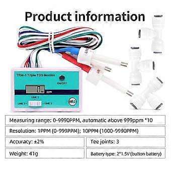 TRM1 Triple TDS Meter Online TDS Water Quality Tester 0-9990PPM LCD Display Water Quality Purity Tester PH Meter