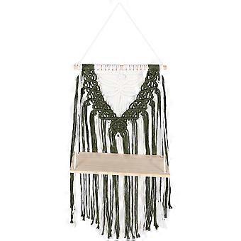 Boho Wall Hanging Macrame Wooden Shelf for Storage Green Single Tier